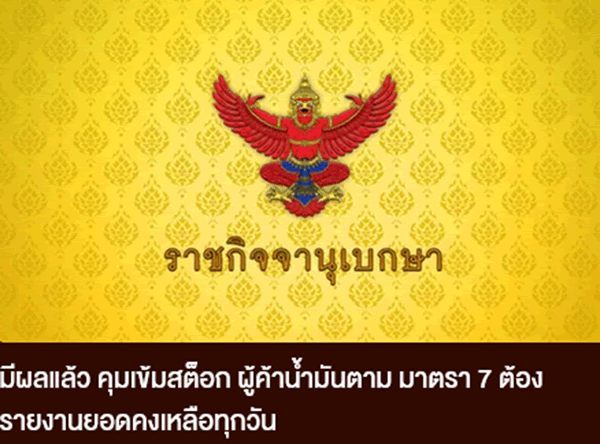 | กฏหมายควบคุมสต๊อกน้ำมันผ่านแล้ว | |||||||||||