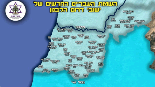 A map published by the Uri Tsafon movement proposing Hebrew names for new settlements in southern Lebanon. Credit: Uri Tsafon ............. แผนที่อ้างอิงบริเวณอิสราเอลต้องการขยายเมือง เช่นเดียวกันกัขบริเวณที่ดินของชาวปาเลสไตน์ ที่ West Bank อิสราเอลปล่อยให้พวก Settlers บุกทำร้ายชาวปาเลสไตน์ ที่ทำไร่มะกอก เผาบัาน เผาต้นมะกอก ชาวปาเลสไตน์ ทนอยู่ไม่ได้ก็ต้องย้ายออก แล้วพวก Settlers ก็เข้าครอบครอง ทั้งนี้ด้วยการสนันสนุนของ นักการเมืองกลุ่มขวาจัดของอิสราเอล